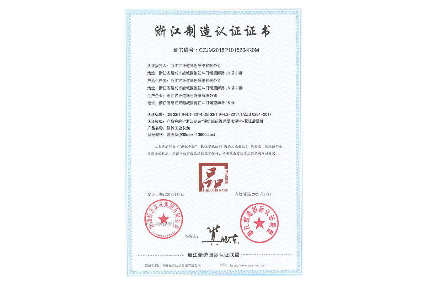 浙江制造證書